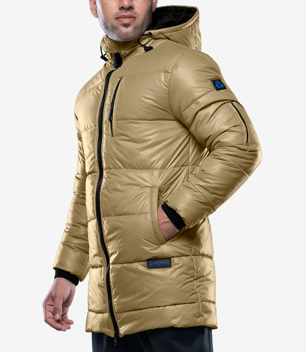Alton Men's Beige Mid-Length Hooded Puffer Coat