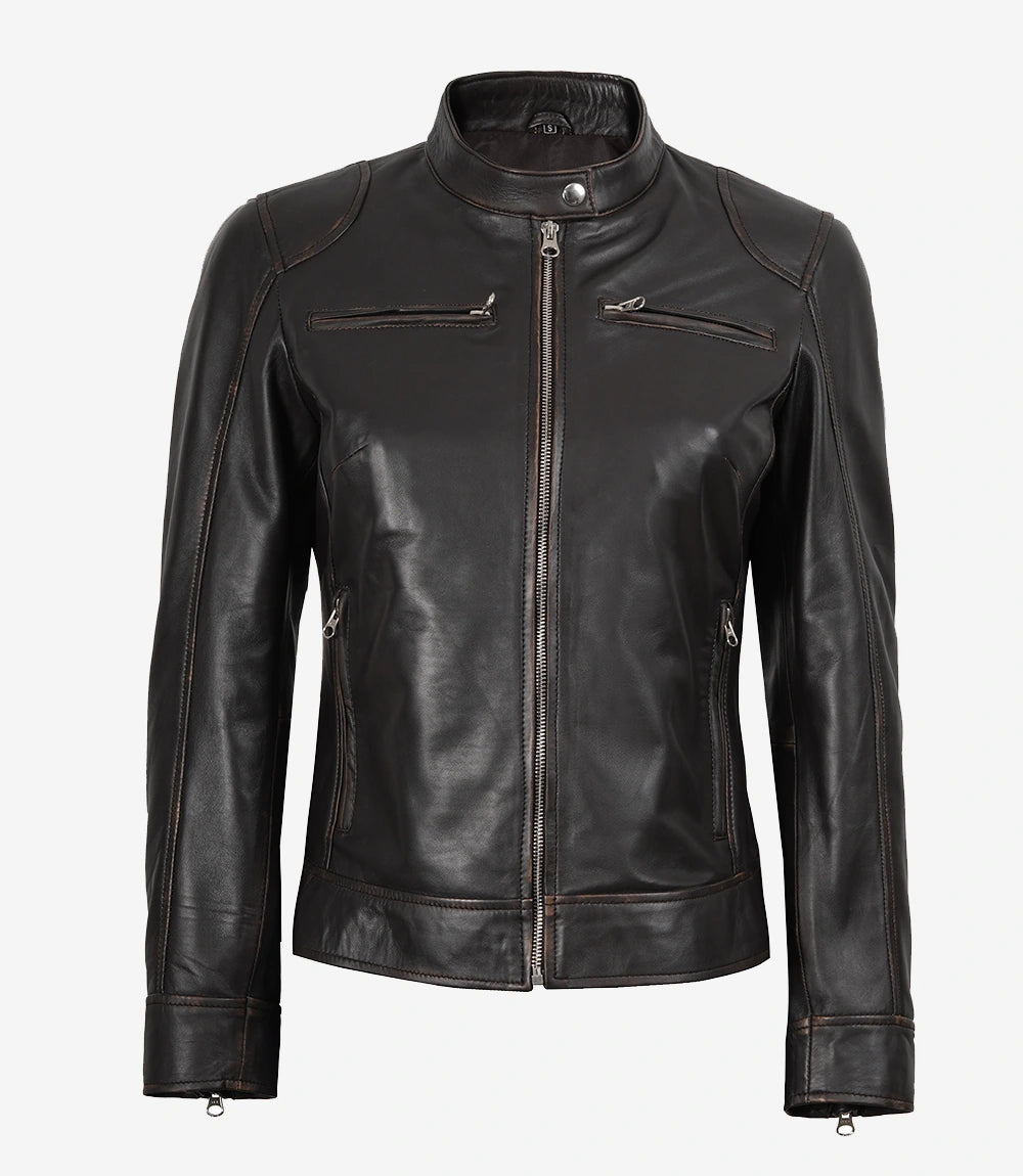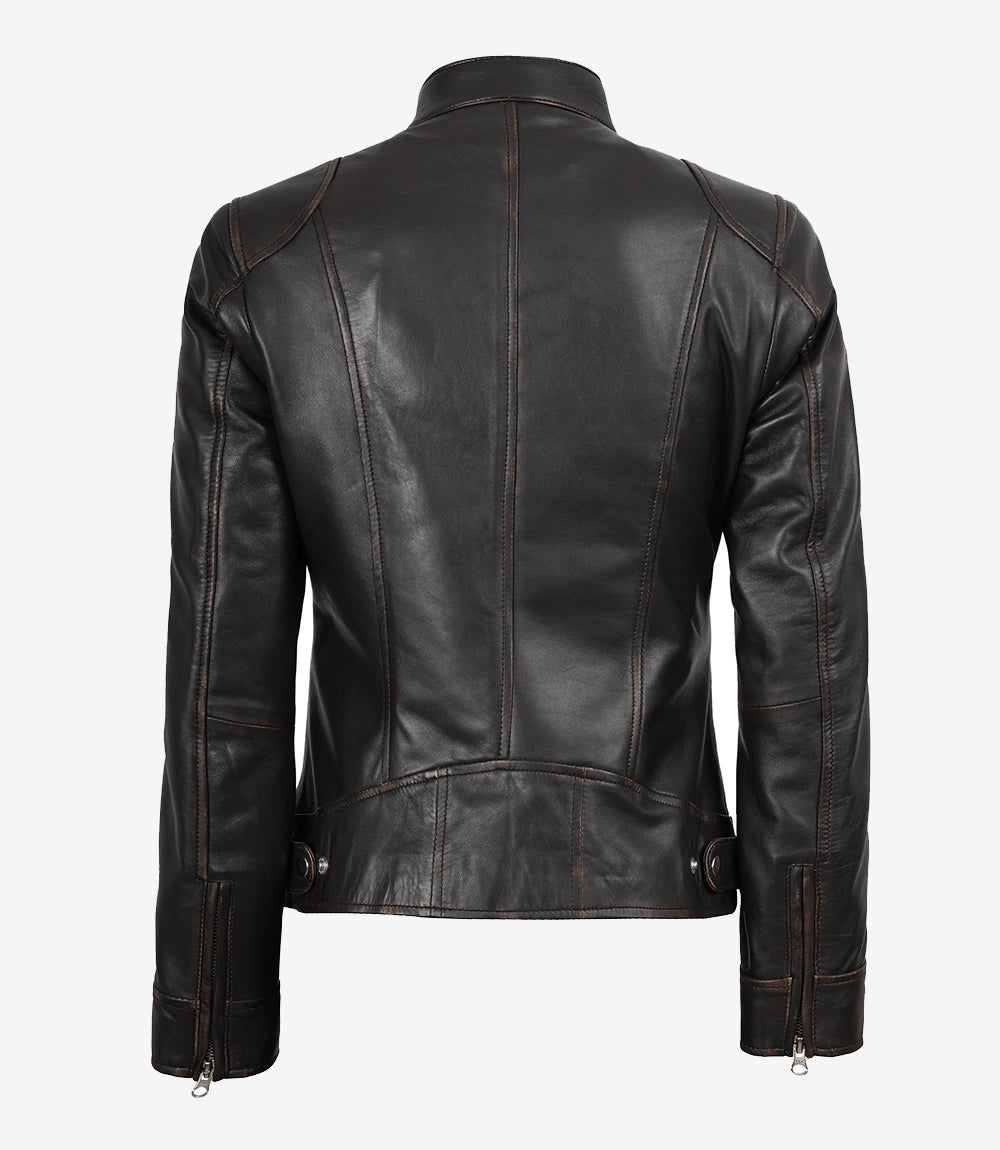 Dodge Women's Distressed Brown Leather Jacket Biker Style