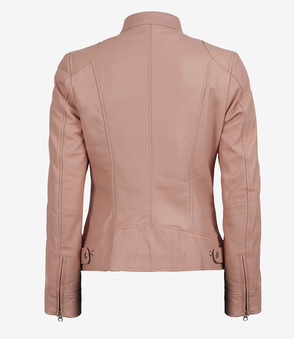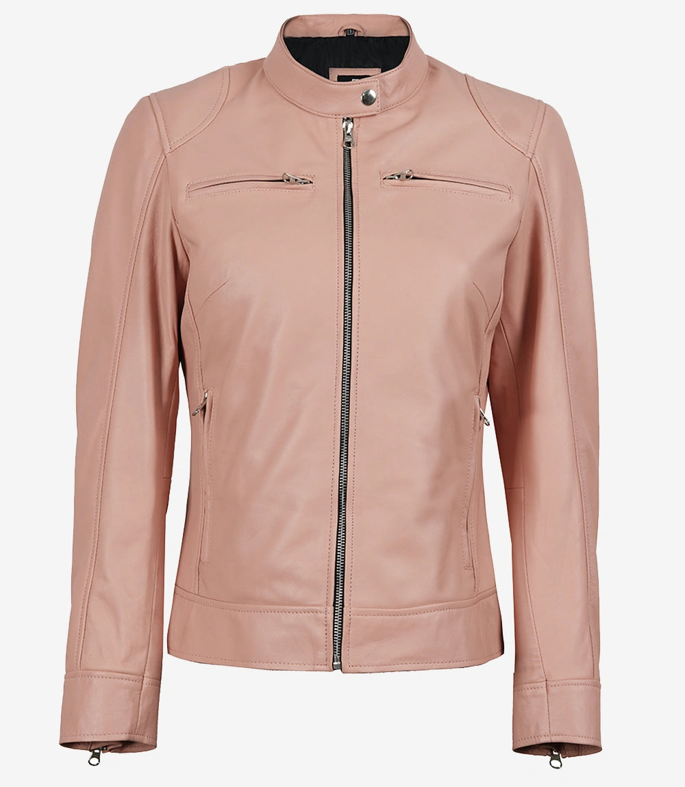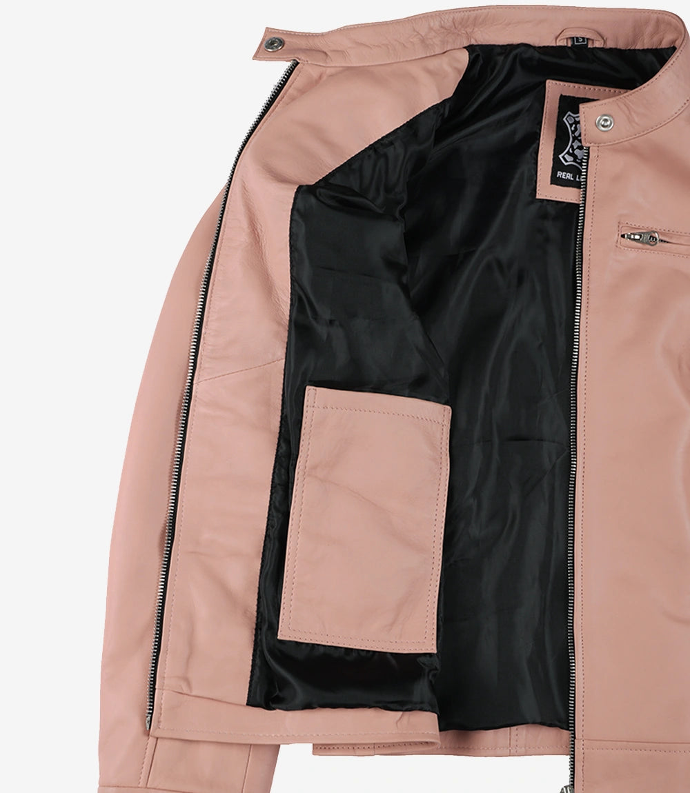 Dodge Women's Light Pink Leather Jacket - Biker Style