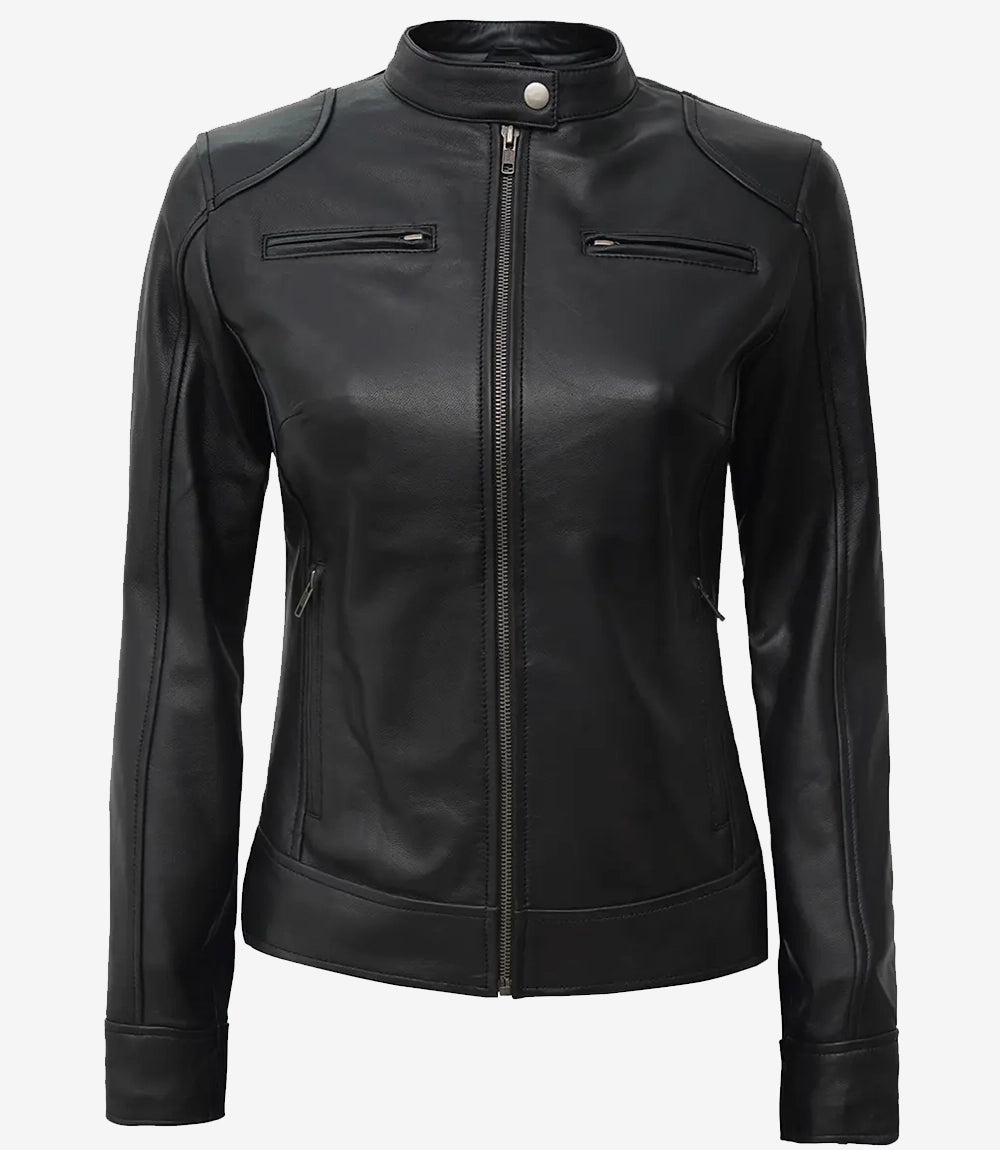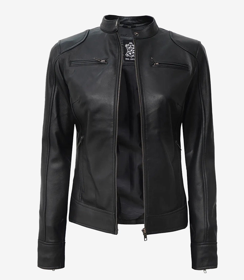 Dodge Women's Petite Black Real Leather Jacket - Biker Style
