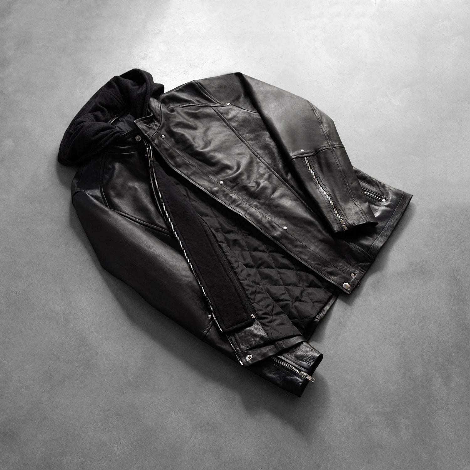 Elevate your style with our Highschool Hooded Leather Jacket in Black, expertly crafted from premium cowhide leather for unmatched durability and sophistication. Designed with a modern fit, this jacket is perfect for layering during the transitional seasons or making a bold statement in the colder months. The quilted viscose lining ensures comfort, while the functional pockets and detachable hood add practicality to your wardrobe.