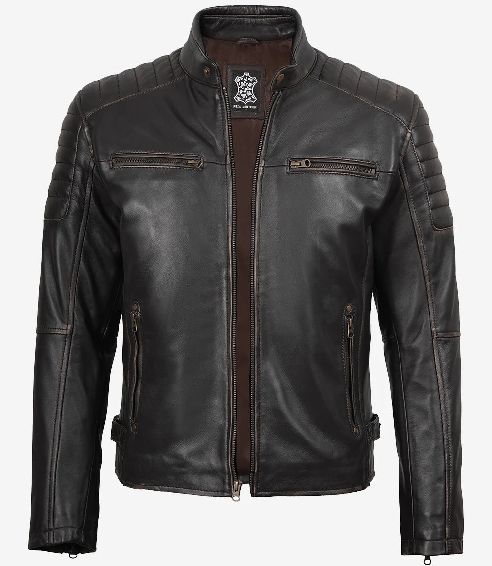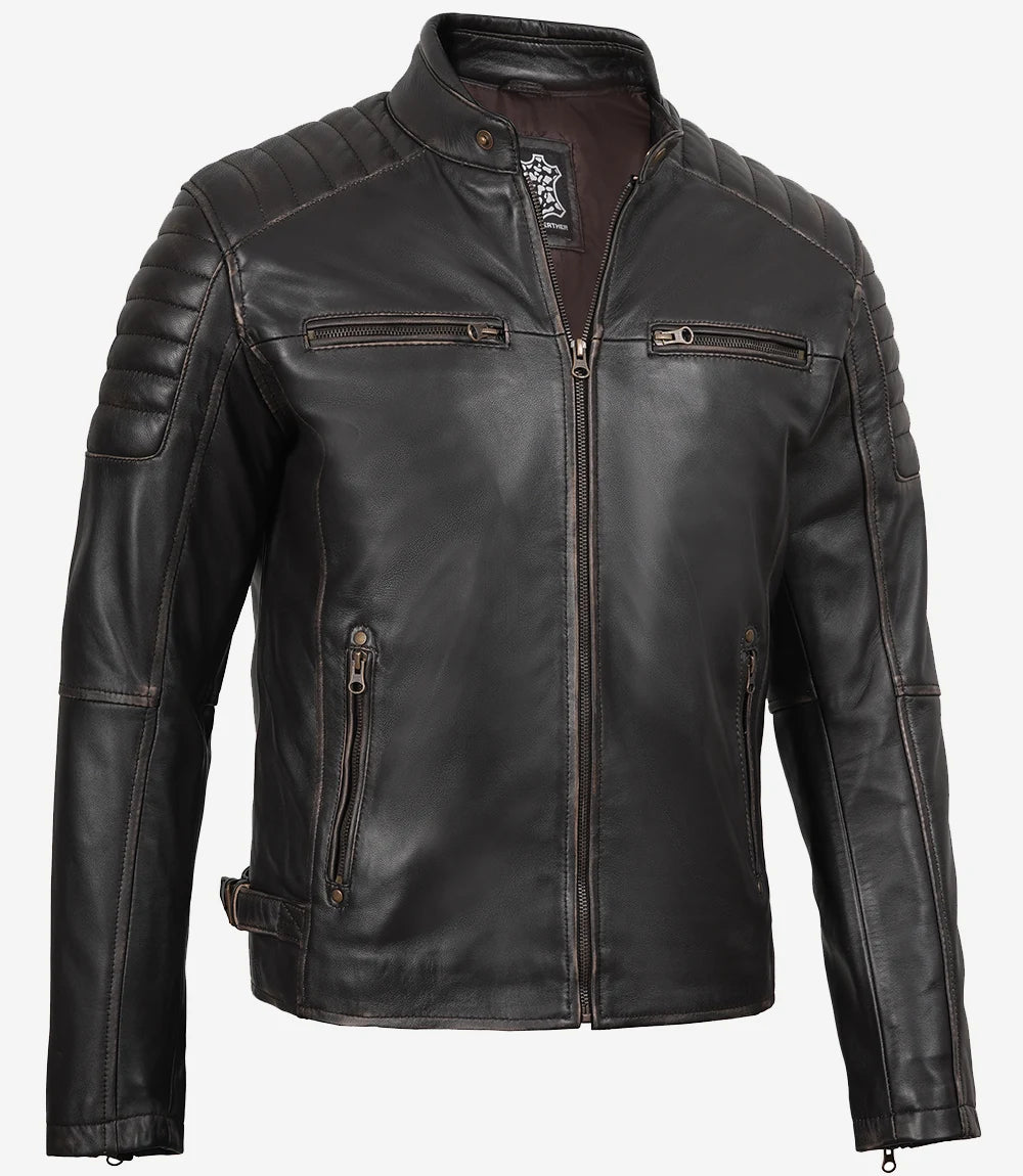 Elevate your style with our Men's Brown Distressed Leather Biker Style Jacket, crafted from 100% real lambskin leather featuring a soft polyester lining for ultimate comfort. This jacket boasts a streamlined fit, making it ideal for both casual outings and evening adventures. The rugged, weathered finish adds a modern twist, making it the perfect seasonal piece for those who appreciate premium quality and timeless design.
