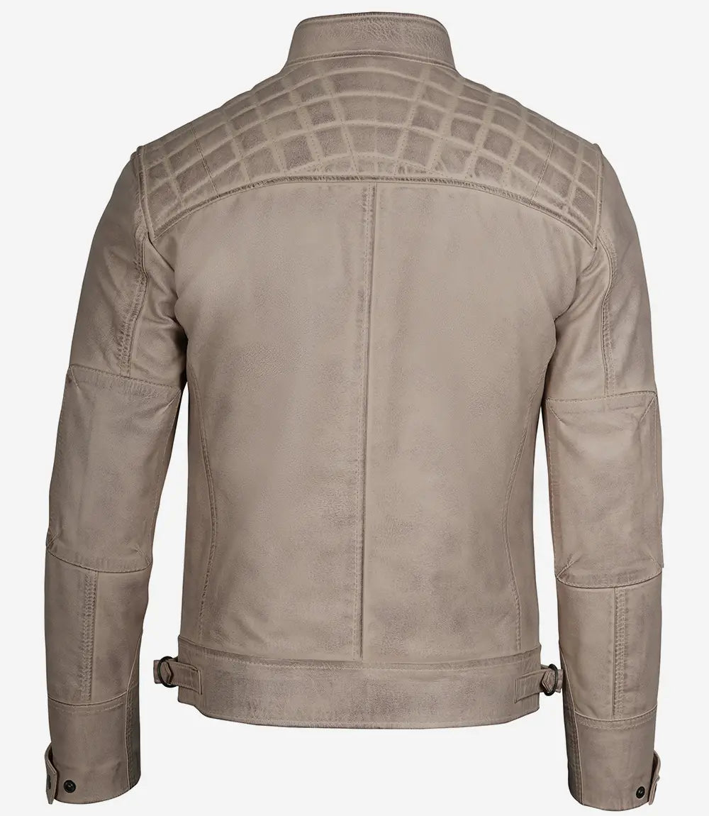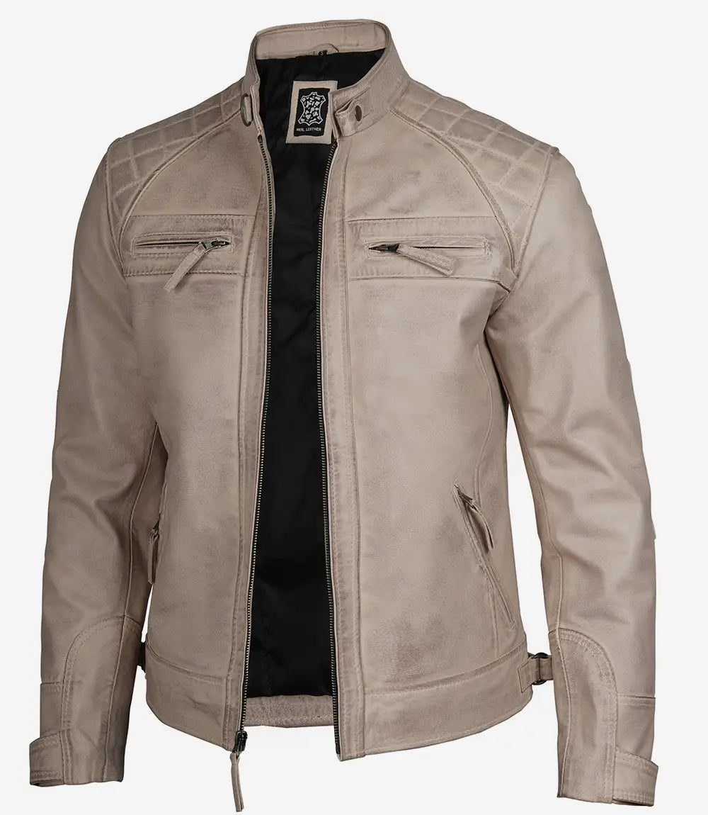 Men's Genuine Leather Biker Jacket in Warm Beige