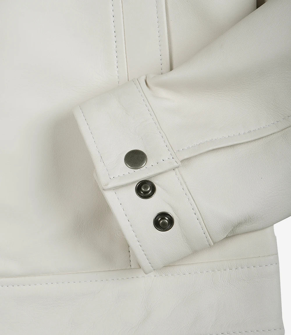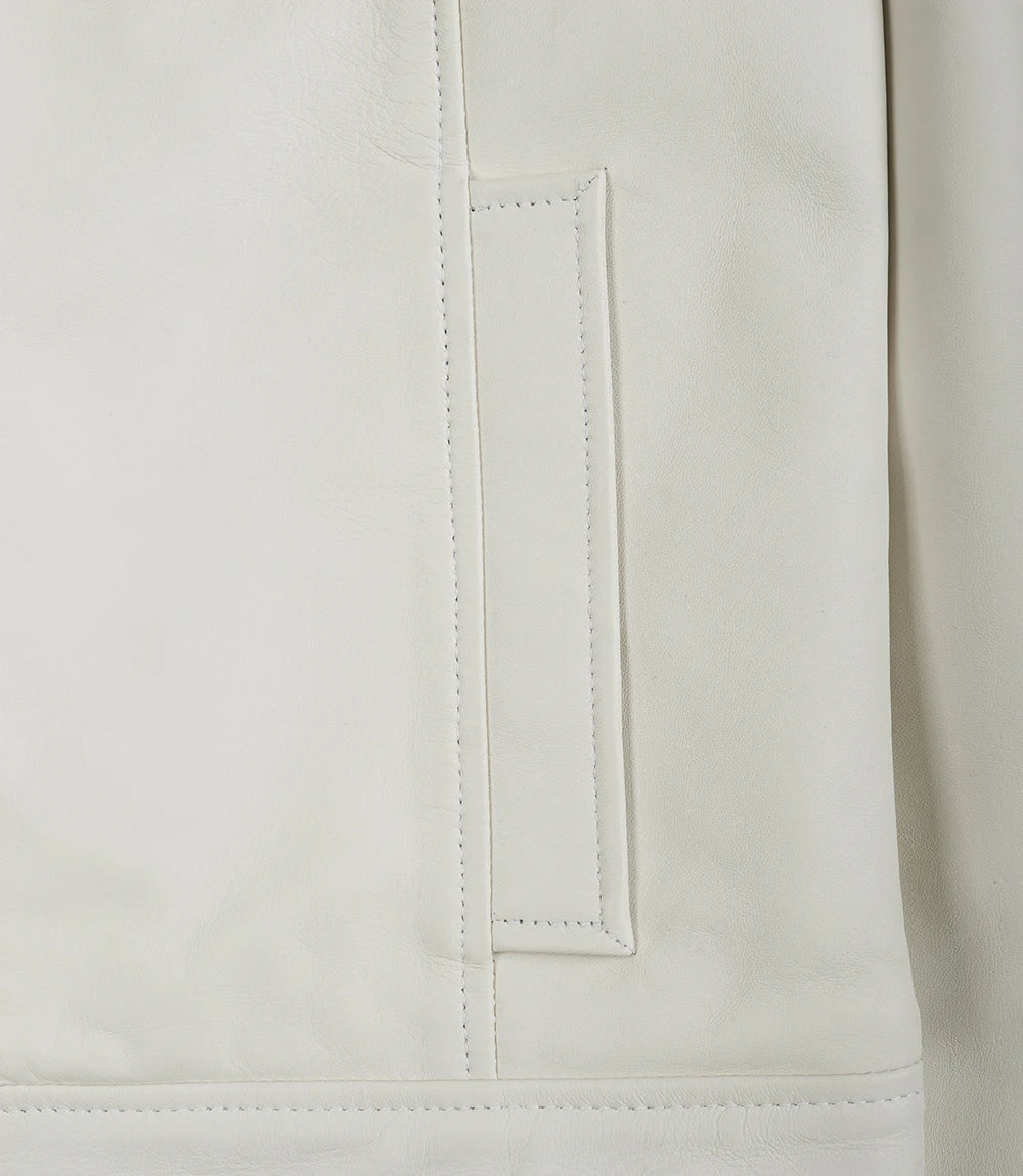 Men's Off-White Harrington Leather Jacket with Shirt Collar