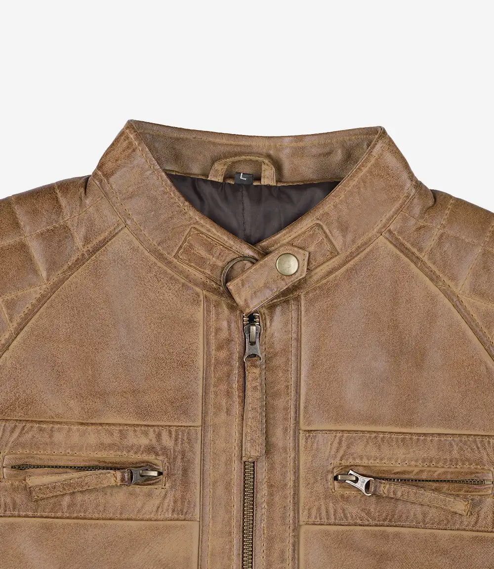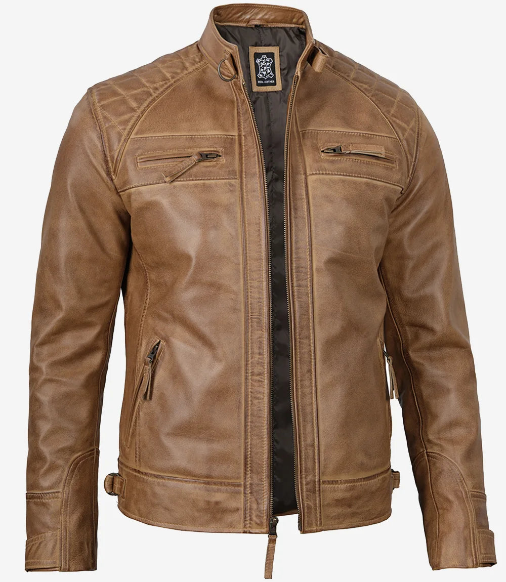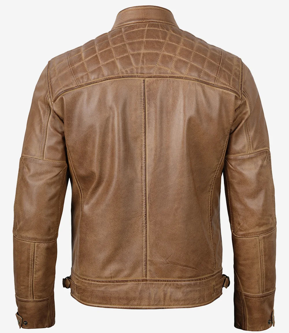 Men's Tall Camel Brown Quilted Leather Jacket - Biker Style