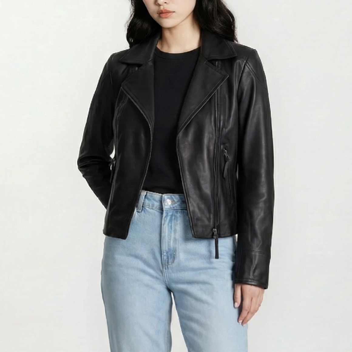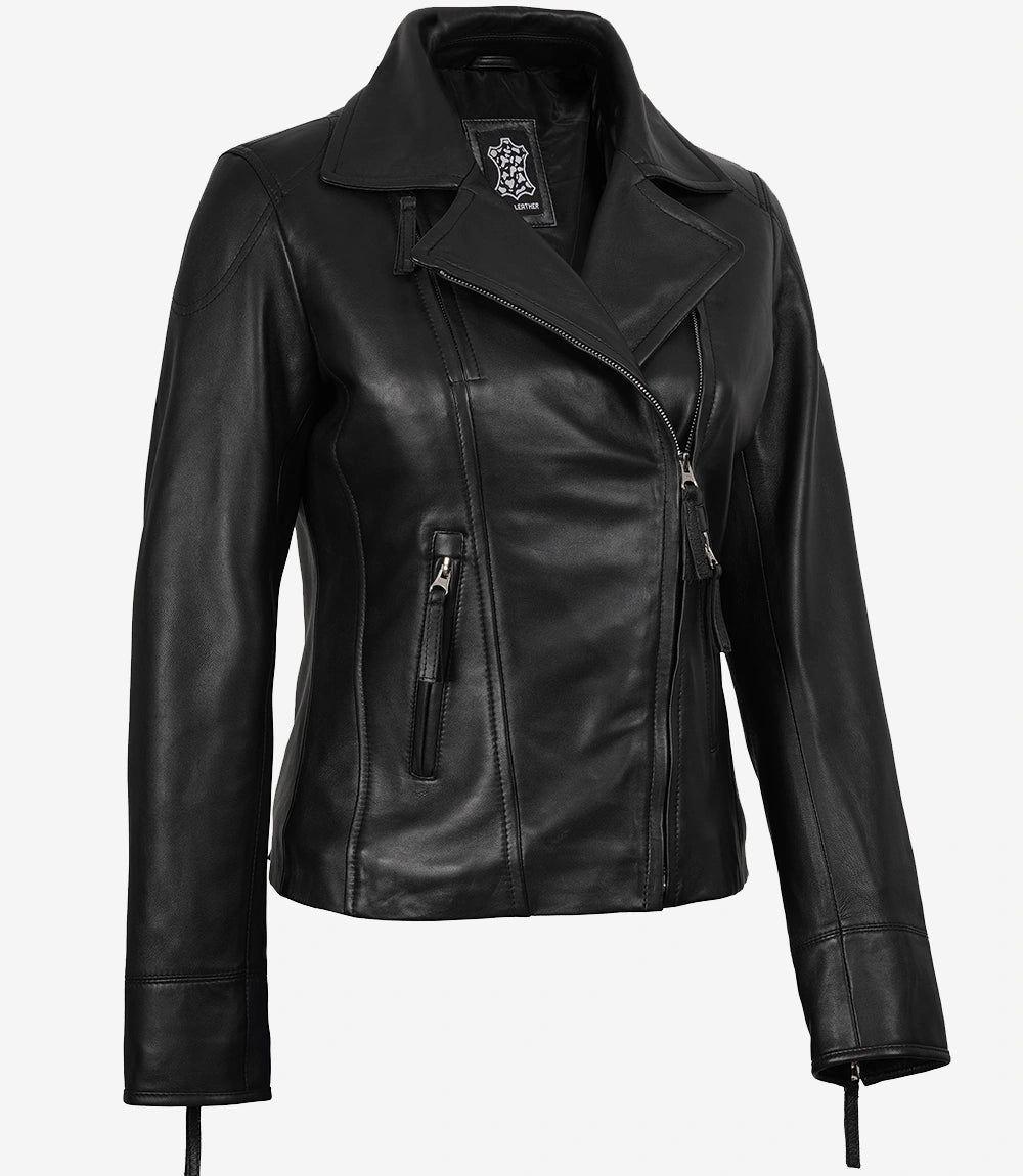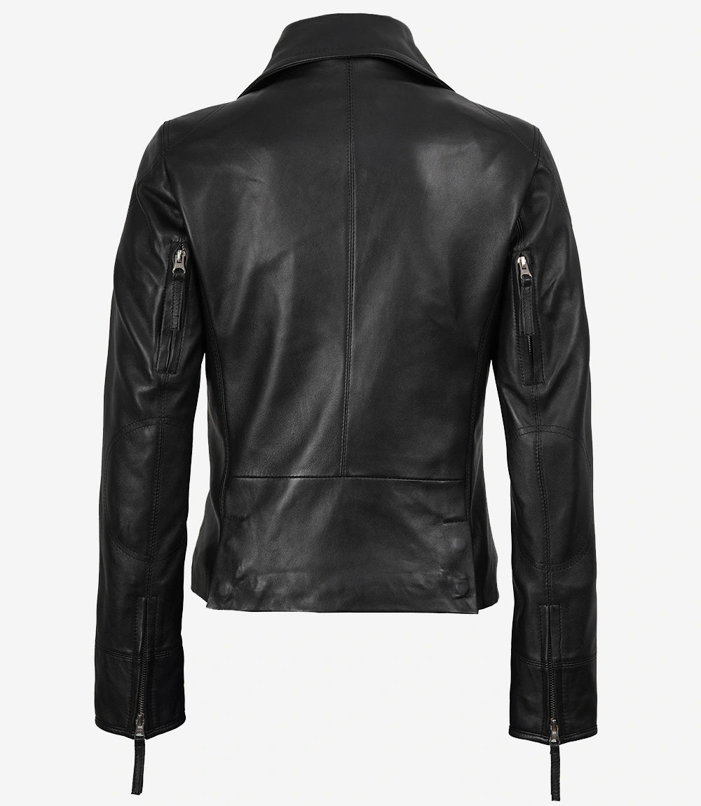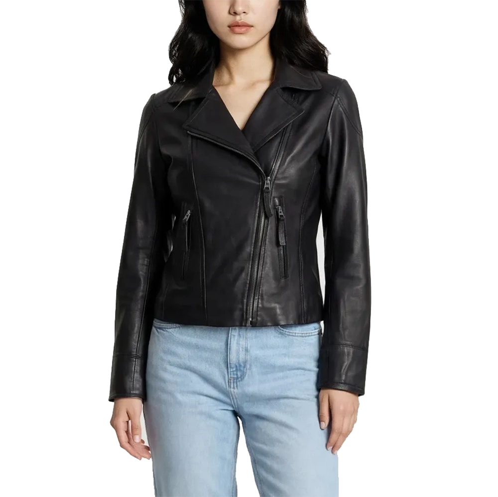 Ramsey Women's Black Leather Biker Jacket with Asymmetrical Closure