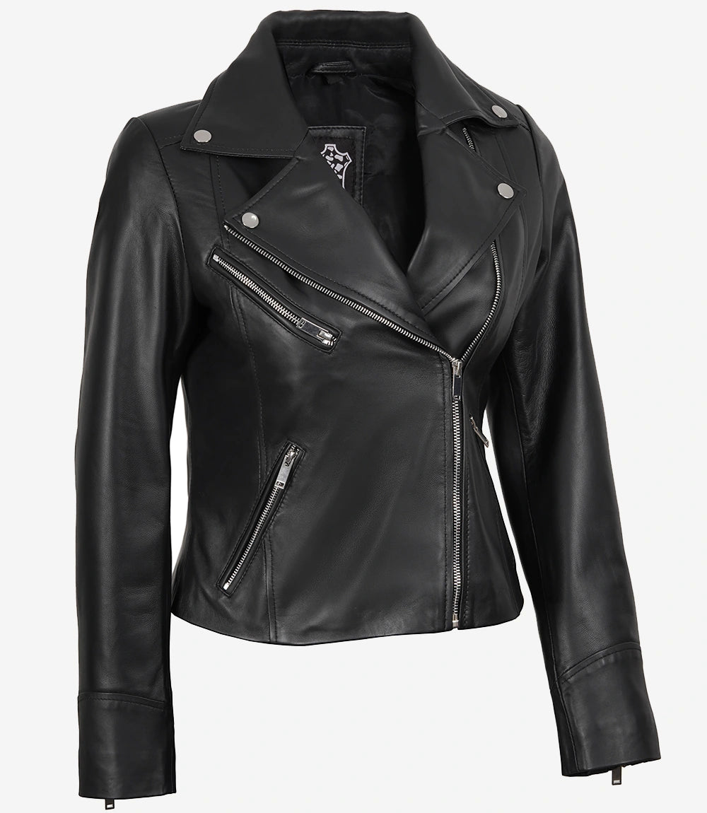 Rita Women's Black Leather Jacket Asymmetrical Biker Style