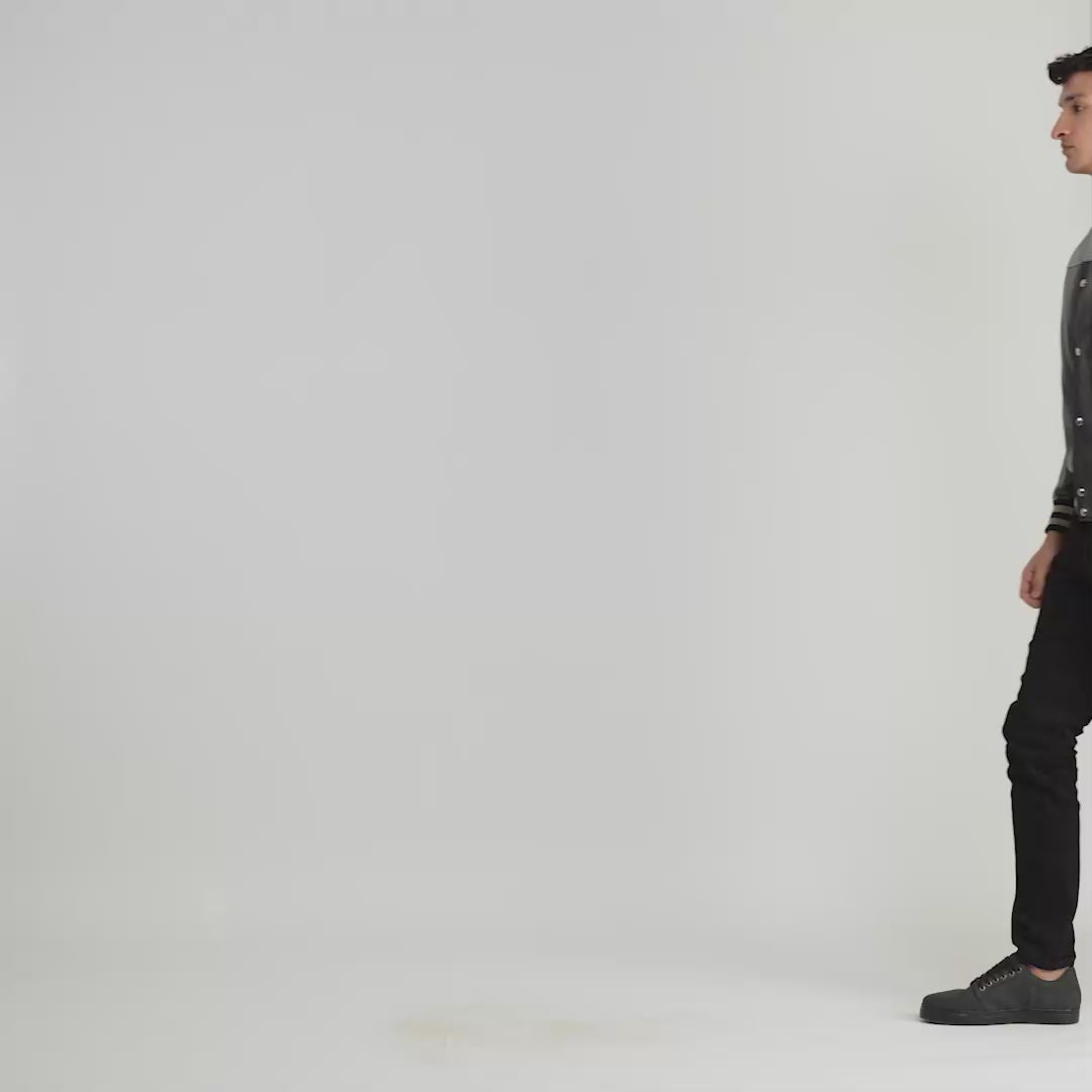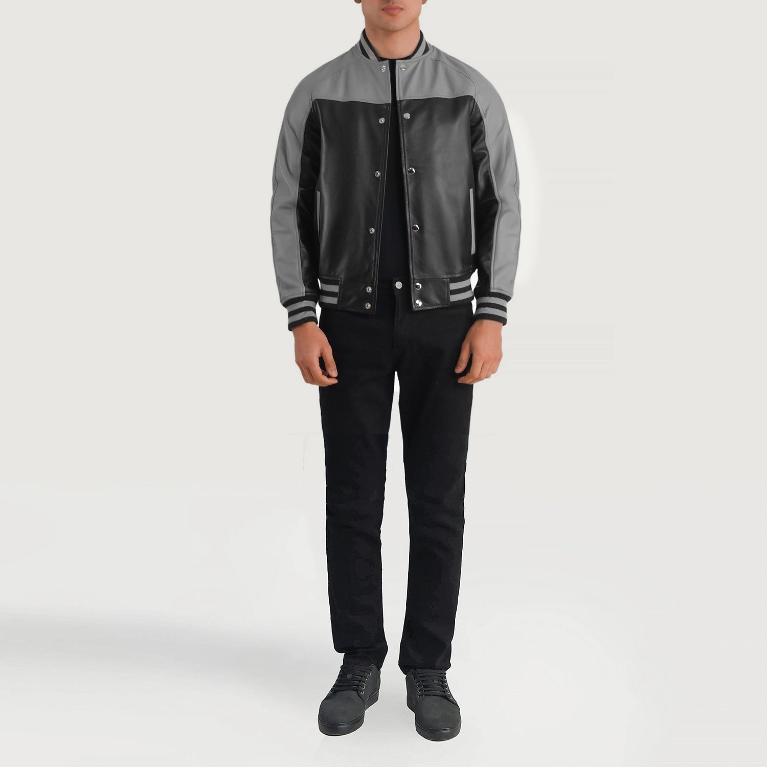 Terrance Leather Varsity Jacket In Black & Grey