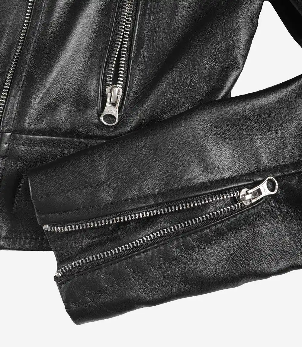 Women's Black Cropped Leather Jacket with Asymmetrical Biker Style
