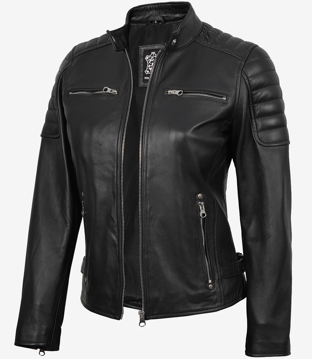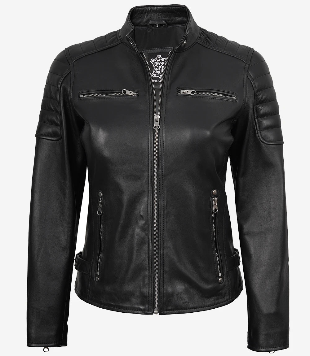 Women's Black Leather Jacket - Biker Style
