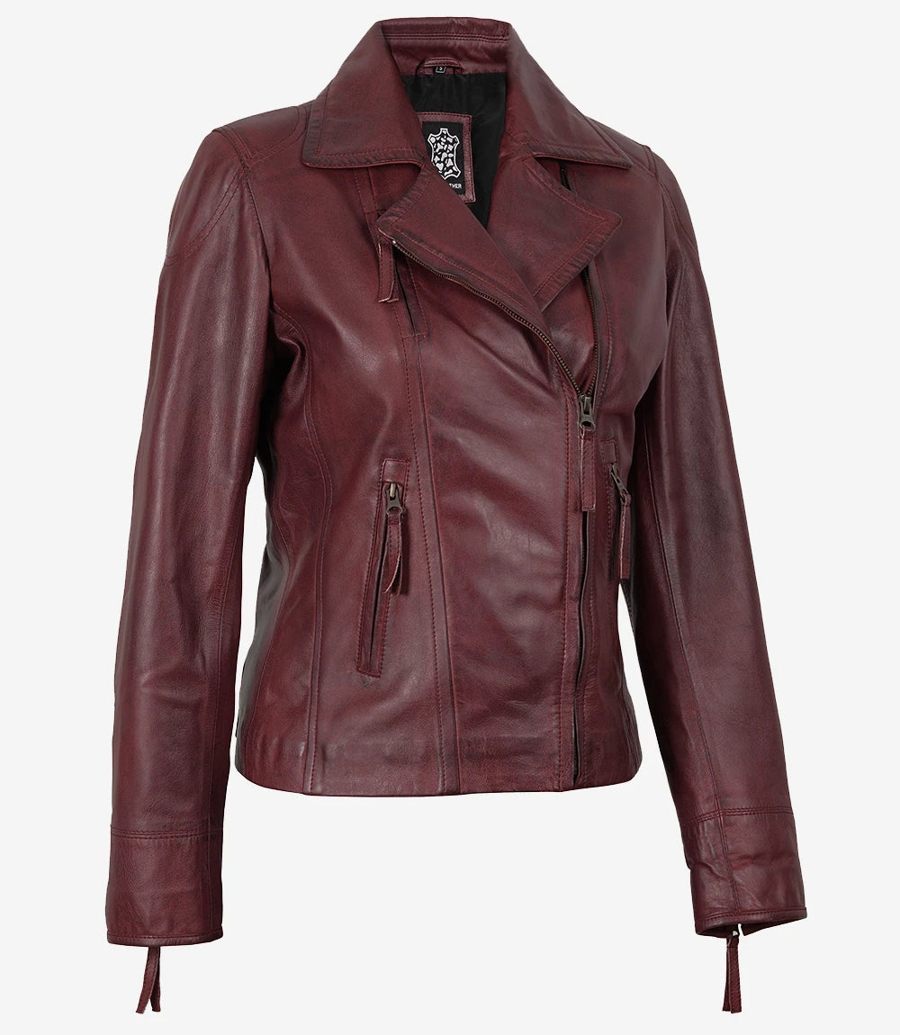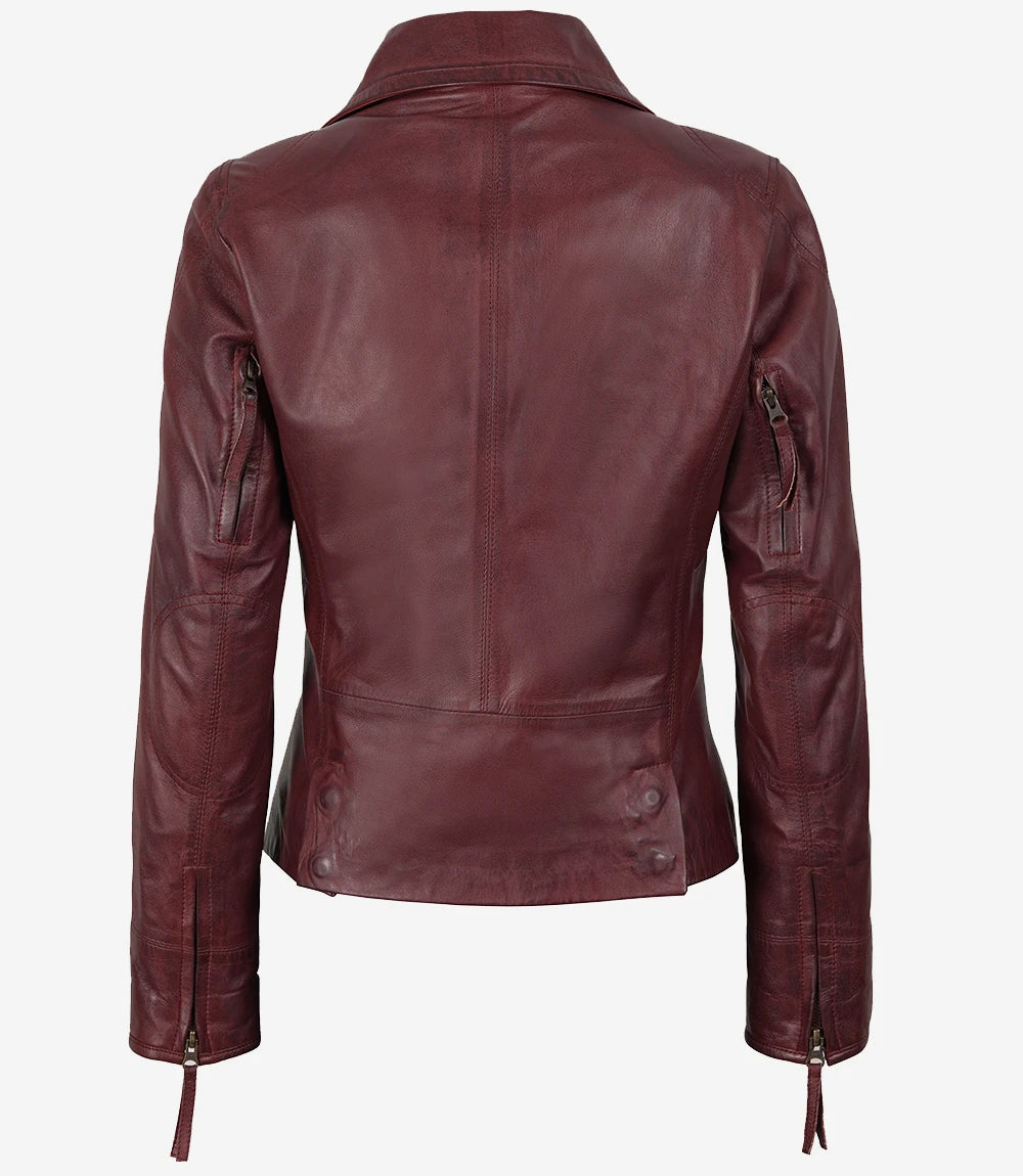 Women's Burgundy Lambskin Leather Biker Jacket