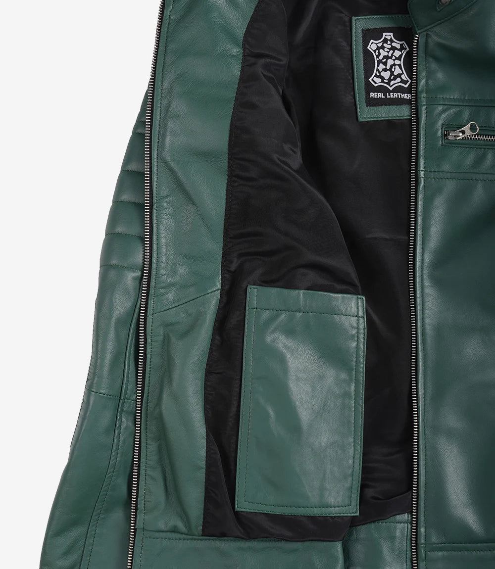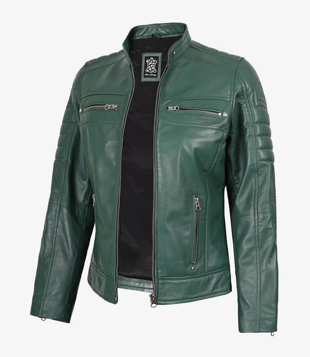 Women's Green Real Leather Jacket Biker Style