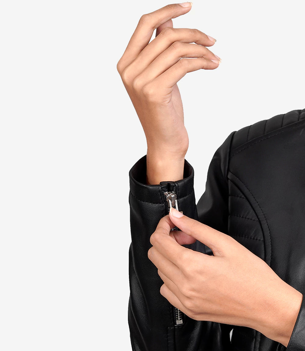 Elevate your wardrobe with our Women's Tall Black Leather Biker Jacket, expertly crafted from 100% real lambskin leather for a luxurious feel. This modern piece features a tailored fit designed for women between 5'9" and 6'0", ensuring both comfort and style. The soft polyester lining enhances wearability throughout the seasons, while the ribbed panels and mandarin collar add a sophisticated touch. Perfect for both casual outings and chic events, this jacket is a timeless investment.